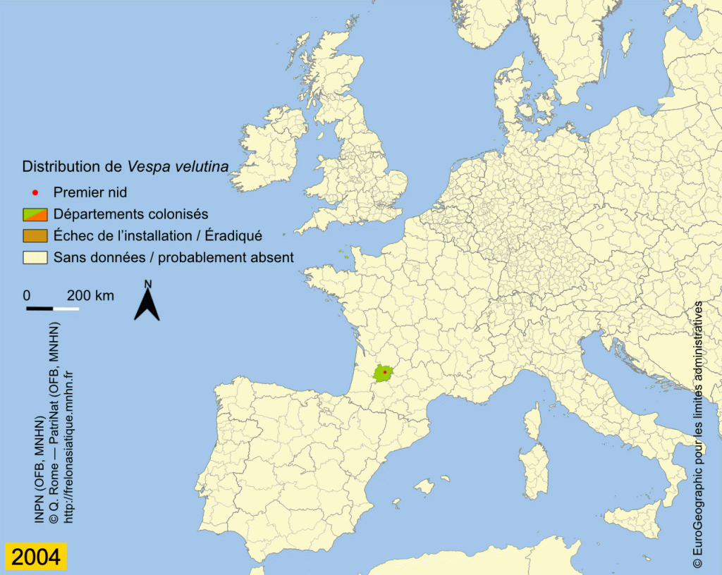 Le frelon asiatique est sans doute arrivé en France en 2003 2004 et a connu une progression sur l’ensemble du territoire hexagonal en 20 ans.